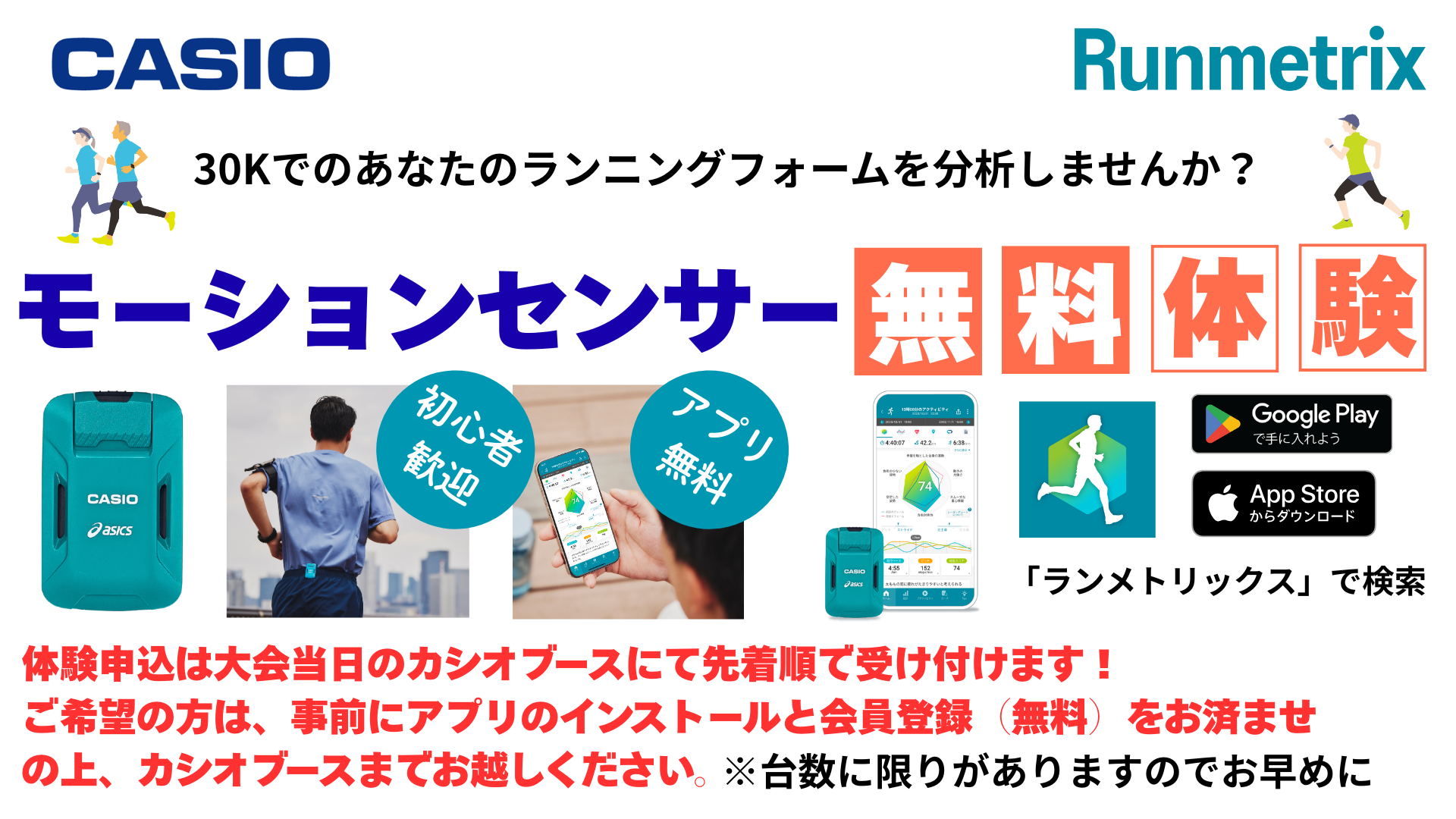 30K大会当日は、カシオブースにてモーションセンサーの無料貸し出しを実施します。