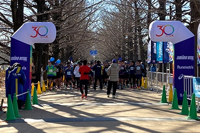 ランナーズ30Kシリーズは「目標達成完全支援型レース」です。レース前には30km走攻略に特化したトレーニング方法や最新のランニングコンテンツをレクチャー、また事前のオンラインイベントを開催。当日は、ペースランナーやアミノバイタル®の提供でのサポート。そして、レース後には目標フルマラソンに向けてのウェビナー開催など、30Kの先にあるターゲットレースに照準を合わせ、参加いただいた方の目標達成をあらゆる角度からサポートします。